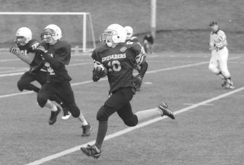 FREDERICTON - The Fredericton Junior Black Kats put their noses to the grindstone Sunday afternoon at Chapman Field - and came away with the New Brunswick bantam football championship. Running back Jake DeWolfe racked up some key yards along the ground before driving across from the one-yard line for the go-ahead touchdown in the third quarter and went up the middle for 38 yards to set up the fourth quarter clincher by Garret Gee to lift the Kats to a come from behind 20-8 victory over the Hampton Huskies. The win completed a doubleheader sweep for the Capital Area Minor Football Association. Earlier in the afternoon, the George Street Crusaders rolled to a 32-0 shutout of the Lancaster Abbies. Both Fredericton teams will now bid for Maritime championships this weekend against Nova Scotia opposition. The Kats opened the scoring in the first quarter when starter Alex Dee connected with wide receiver Mathieu MacDonald on a 26-yard pass and run on the final play of the first quarter. The Huskies got it back when Ben Shepard, their impressive pivot, put together a second quarter drive highlighted by a 44-yard pass and run to Sam Merrithew that set Hampton up first and 10 from the Kats 30. They marched it from there to the Kats three, where Peter Morell finally cracked over. The booted convert made it 8-6 for the Huskies at the half. The key play came in the third quarter. The Kats were trailing with the clock ticking, failing to move the ball in three downs and, facing fourth and long on the Hampton 52, forced to punt it away. Tom McGinn got downfield and pounced on a fumble by Hampton punt return man Geoffrey Wilson, and the Kats took over first and 10 from the Hampton 23. Six plays later, DeWolfe was bringing it to the house - and the Kats were on their way to bringing home the Samuel Babb Trophy as provincial bantam champs. Meanwhile, the George Street Crusaders captured the Bob Pierce Memorial Trophy as provincial peewee football champions with their shutout win against Lancaster. The Crusaders played solid defence all day and that allowed them time to get the offence untracked. Quarterback Matt Murphy finished off a couple of drives with quarterback keepers for touchdowns in each of the first and second quarters to give the Crusaders a 16-0 halftime edge; halfback Noah Zilbert completed a 22-yard halfback option pass to Klinton Miller on a third and long and then took it 24 yards to the house on the next play and then booted the two-point convert to make it 24-0, and fullback Blake Murphy sealed the win with a 27-yard touchdown run as the Crusaders cruised to the win. They'll host the Nova Scotia champions for the Maritime championship next weekend. "After our second touchdown, I just know our team felt really good and really pumped up," said Zilbert, who demonstrated good speed to get outside and, when the situation called for it, demonstrated he could throw the ball downfield on the halfback option too. "We were beaten by a better team,'' Abbies head coach Bruce Watts said. "They shut us down on offence and I give them full marks.'' While disappointed with the setback, the Lancaster coach said he takes pride in the Abbies' 10-1 season and added that it's an accomplishment to finish second in the province among 21 peewee teams. "Our players were quite upbeat (after the game) despite the defeat,'' Watts said. "The players learned a lot during the course of the year. We certainly got a lot of positive feedback from the players and the parents. All in all, I think we had a very successful season.'' - with files from the Telegraph-Journal |